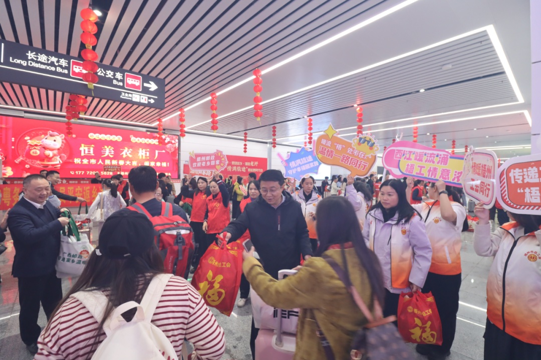 为切实服务好在外务工的职工群众,梧州市总工会联合市人社局、市退役军人事务局、中国邮政集团有限公司梧州市分公司共同开展迎接2026年梧州籍在粤务工创业人员春节平安返乡慰问活动,用实实在在的行动传递党委、政府与工会组织的关怀。